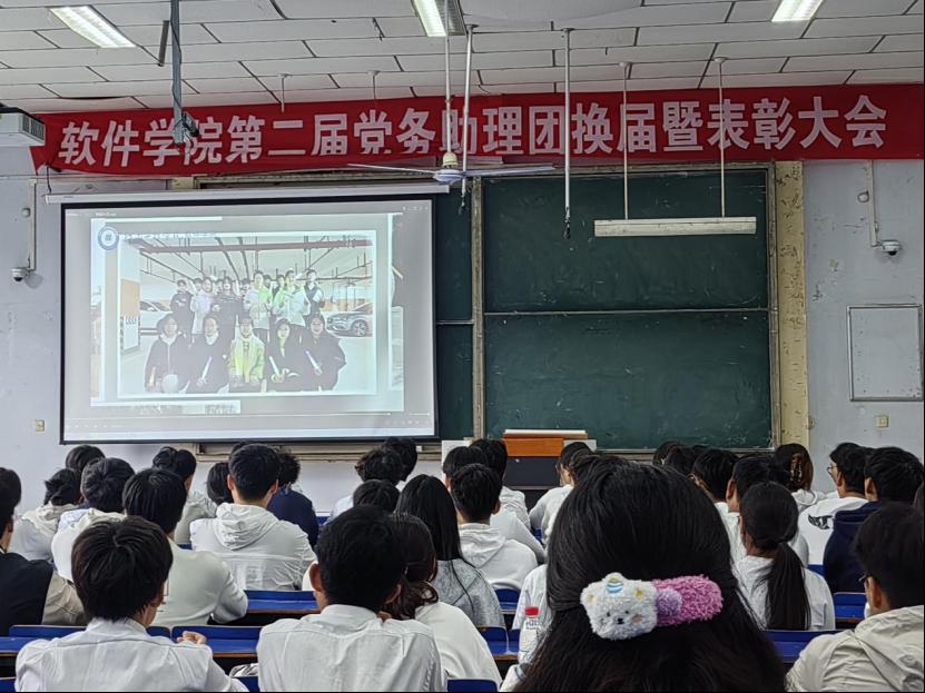 岁月不居,时节如流。过去一年,软件学院党务助理团恪尽职守,在院党委的领导下,发挥模范带头作用,为我院党务工作贡献了重要力量。为持续激发团队活力,保障工作的有序衔接,软件学院于10月11日中午12:30在西区6J101教室召开第二届党务助理团换届暨表彰大会。软件学院党委副书记张婉、各学生党支部书记、党务助理团全体成员及全体学生干部参加本次会议,会议由党务助理团成员张顼主持。